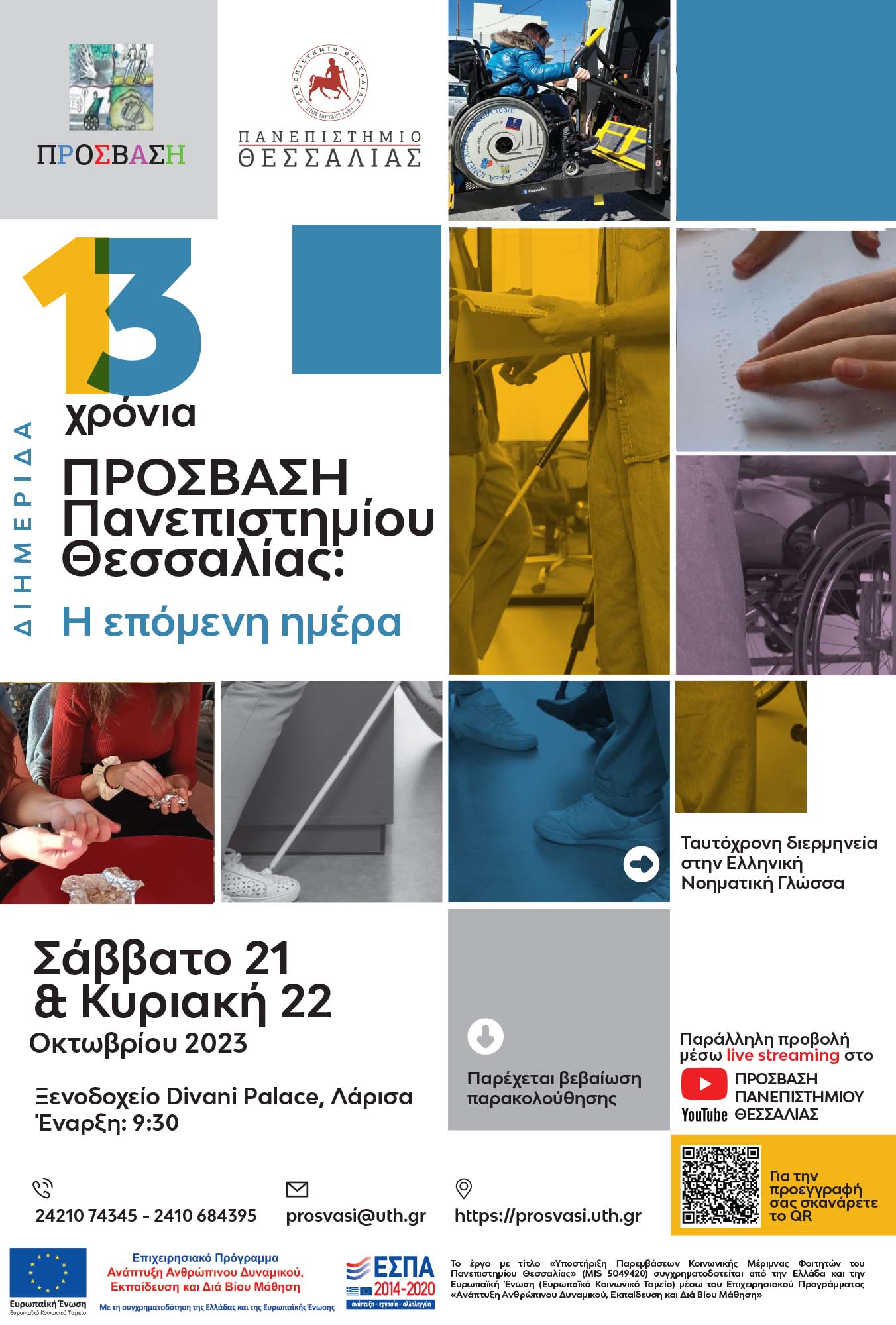 Γενικές Ανακοινώσεις 16-10-2023 Διημερίδα με τίτλο:"13 χρόνια ΠΡΟΣΒΑΣΗ: Η επόμενη ημέρα" Λεπτομέρειες Δημιουργήθηκε : Δευτέρα, 16 Οκτωβρίου 2023 16:39 Θα βρείτε εδώ την αφίσα και την σχετική πρόσκληση.